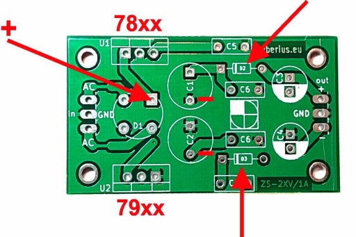 - kondensatory elektrolityczne - minusem w kierunku układu 79xx,