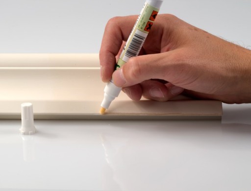 Pisak z farbą kryjącą, szybkoschnący, wodoodporny, nieścieralny, odporny na promienie UV. Idealny do barwienia krawędzi płyt laminowanych ( wypełnia drobne wyszczerbienia ). Stosowany do retuszu uszkodzeń na powierzchniach z drewna, laminatów, tworzyw sztucznych i aluminium. Do użytku wewnątrz i na zewnątrz. Końcówki wymienne C61 można zamawiać osobno.