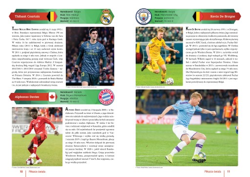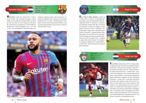 Piłka nożna jest najpopularniejszym sportem na świecie. To wyjątkowe wydanie z pewnością zadowoli każdego fana tej niezwykle widowiskowej dyscypliny. Prezentujemy tu postacie ponad stu wybitnych gwiazd oraz młodych, obiecujących talentów. Oprócz licznych fotografii i ciekawostek z życia piłkarzy, umieściliśmy również dane dotyczące m.in. wartości rynkowej poszczególnych zawodników. Przejrzysta szata graficzna sprawia, że książka jest atrakcyjna zarówno dla młodszych, jak i troszkę starszych kibiców piłki nożnej.