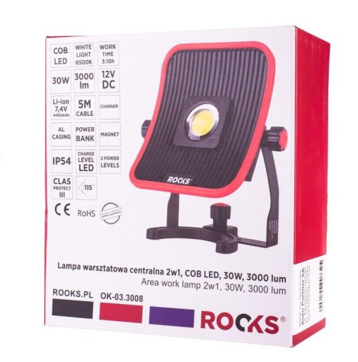 》》》 AKUMULATOROWA LAMPA WARSZTATOWA COB LED, 30W, 3000 lm OK-03-3008 《《《