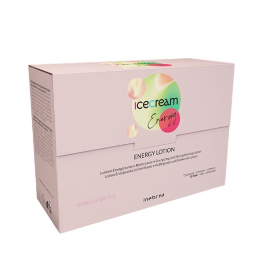 Lotion wzmacniający Inebrya Energy przeznaczony do włosów osłabionych, bez energii. Ziołowy preparat bogaty w proteiny sojowe, ekstrakt z rozmarynu i pokrzywy. Pobudza on do pracy mieszki włosowe, stymulując wzrost włosów i przeciwdziałając ich wypadaniu. Pomaga przywrócić równowagę skórze głowy. Dodatkowo zapach eukaliptusa chłodzi i odświeża. Opakowanie zawiera 12 ampułek po 10ml, dzięki czemu jest łatwe w użyciu.