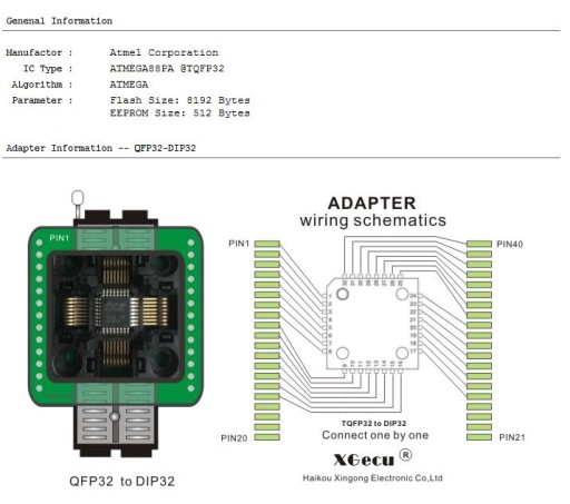 - Wyprowadzenia: 1:1 TQFP32 (raster: 0,8mm / rozmiar 7x7mm) -->PDIP32