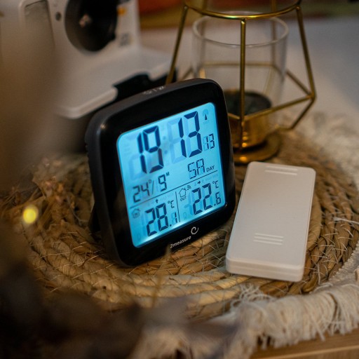 Temperatura zawsze pod kontrolą? Teraz to możliwe. Nasz elektroniczny termometr zrobi to za Ciebie - codziennie podając Ci aktualne dane dotyczące temperatury wewnątrz, jak i na zewnątrz pomieszczeń. Dzięki dołączonemu do zestawu czujnikowi o zasięgu do 60 m jesteś w stanie kontrolować temperaturę za oknem, na tarasie lub balkonie. Wbudowany zegar z kalendarzem, alarmem, funkcję drzemki i możliwością ustawienia strefy czasowej rozbudowuje funkcjonalność urządzenia i pozwala korzystać z niego, niczym z budzika! Wbudowana pamięć przechowuje ostatnie minimalne i maksymalne wyniki pomiarów odnotowane w trakcie dnia, a wskaźniki tendencji zmian temperatur pomagają określić, czy zachodzi ochłodzenie, czy ocieplenie powietrza w Twoim otoczeniu!