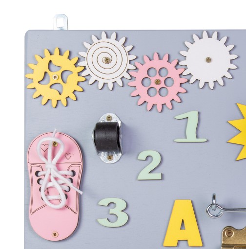 Tablica sensoryczna to świetny pomysł na kreatywną zabawę dla Twojej Pociechy. Nauka przez zabawę to najlepszy sposób na prawidłowy rozwój dzieci. Tablica jest idealnym miejscem na ćwiczenie pierwszych literek oraz cyferek. Odpowiednio wyselekcjonowane elementy ruchome i grające sprawią, że Twoje dziecko rozwinie swoją kreatywność oraz zdolności manualne. Dodatkowo pobudzi to w nim pomysłowość i zachęci do eksplorowania otaczającego go świata. Tablica wykonana w Polsce, bardzo solidna, z materiałów o wysokiej jakości.