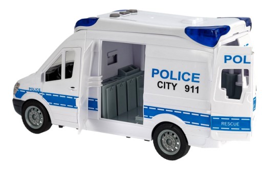 Rewelacyjny radiowóz do przewodu policjantów lub innych zadań podczas akcji ratowniczej. Wyposażony w światła i realistyczne efekty dźwiękowe.