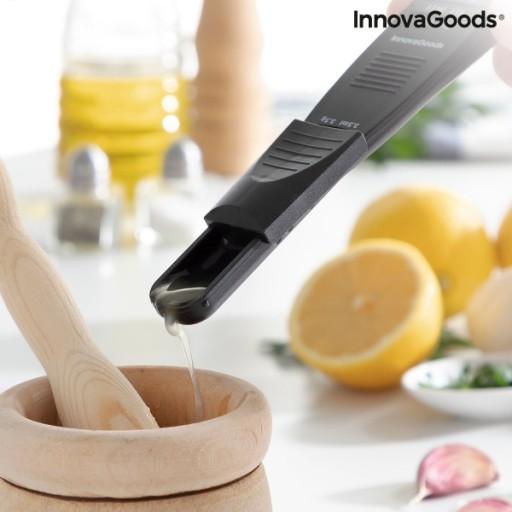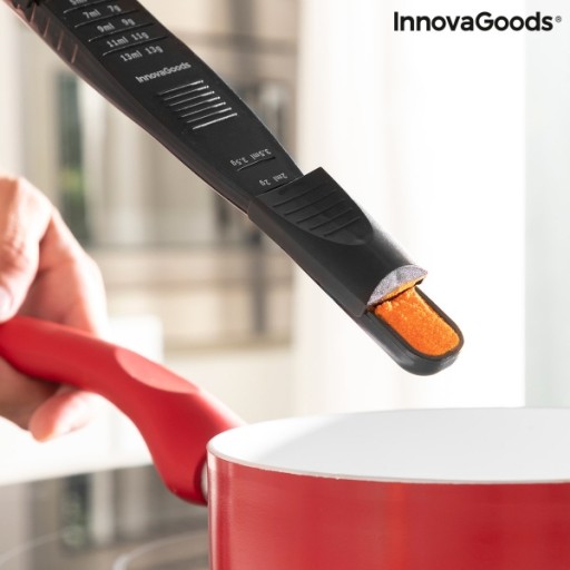 Regulowana łyżka miarkowa 9 w 1 Ninoon InnovaGoods pozwala na łatwe i wygodne odmierzanie wielu stałych i płynnych artykułów spożywczych do przygotowania najróżniejszych przepisów.