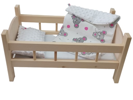 ŁÓŻECZKO DREWNIANE dla lalek DUŻE +POŚCIEL