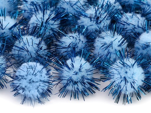 Pompony pluszowe błyszczące w kolorze błękitnym, z niebieską folią.