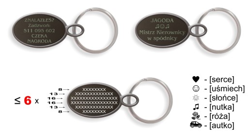 PERSONALIZACJA - grawer na tylnej stronie breloczka (opcje wyboru):