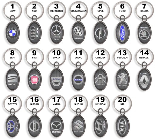 Grafika marki samochodu lub inna grafika z naszej galerii (dostępne wzory breloczków w dalszym opisie oferty)