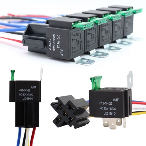 Bezpiecznik ostrza przełącznik zestaw uprzęży akcesoria samochodowe SPST ze 14AWG przewodów samochodowych przekaźniki elektryczne 12V 5-Pin 30A Nazwa produktu: 6 sztuk 5-Pin SPST motoryzacja elektryczne przekaźnikiTyp: przekaźniki elektryczneMateriał produktu: plastik ABS MetalKolor produktu: czarnyRozmiar: 35*36mm obciążenia: 30APrąd przełączania styków: 30ANapięcie przełączania styków: 14VDCFormularz owy: normalnie otwarty/transferPrąd znamionowy: 30ANapięcie znamionowe: 12VZasilanie cewki: 12VMoc cewki: 1.8WIlość: 6 sztukOpis produktu:1. Ulepszona wersja-przekaźniki samochodowe wbudowany bezpiecznik gniazdo z wliczony w cenę 30A bezpiecznik ostrza, nie ma potrzeby oddzielnego uchwyt bezpiecznika, oszczędność miejsca i pieniądze. Wytrzymałe przewody 14AWG do głównego u.2. Łatwe okablowanie-gniazda przekaźnikowe są wyposażone w kolorowe przewody do obciążeń/akcesoriów wygodne okablowanie. Black - Ground (85), Red - VDC (30), White - Trigger (86), Blue - Output N/O (87).3. Zgrabna konstrukcja montażowa-blokująca konstrukcja unikalnego gniazda męsko-żeńskiego na każdej krawędzi gniazda, łatwa do podłączenia wszystkich przekaźników, zapewniająca czystą i schludną instalację.4. Dobra konstrukcja-12V DC (Max 14V DC) i 30a wysoka zdolność przełączania. Bosch styl 5-Pin SPST (jednobiegunowy jednopołożeniowy) przekaźnik. Metalowy uchwyt montażowy na przekaźniku elektrycznym ułatwia instalację.5. Szerokie zastosowanie-szeroki zakres zastosowań, znacznie stosowany do światła samochodowe, światła przeciwmgielne, wycieraczki, rozrusznika, wentylatorów, głośników, systemów kontroli trakcji itp.MICTUNING bezpieczniki przekaźniki samochodowe przełącznik zestaw uprzężyPakiet zawiera:6 sztuk przekaźniki elektryczne