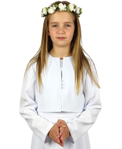 Bolerko stanowi doskonałą alternatywę dla cieplejszych okryć jako uzupełnienie sukienko-alby z krótkim rękawem.
