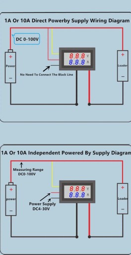 Uniwersalny moduł woltomierza amperomierza z wbudowanym bocznikiem. Miernik zasilany jest napięciem stałym w zakresie 3V-30V DC.