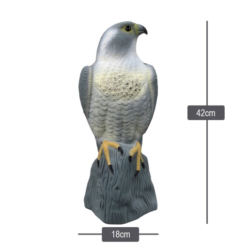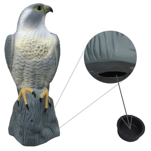 Imituje prawdziwego ptaka i stanowi wizualne zagrożenie dla mniejszych ptaków i gryzoni skutecznie je odstraszając!