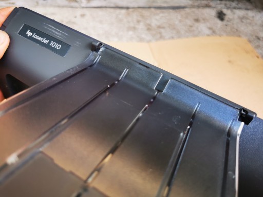 Z doświadczenia wiemy, że przez nieuwagę lub nieodpowiednią obsługę drukarki często użytkownicy wyłamują mocowania trzymujące tackę odbiorczą papieru.