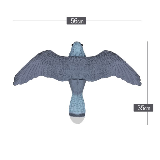Specjalnie wyprofilowane skrzydła powodują że nawet przy delikatnym wietrze sokół porusza się i wygląda jak by szybował w locie. Błyszczące oczy oraz odwzorowane naturalne barwy ptaka dodają jeszcze bardziej realistycznego wyglądu co wzmaga efekt odstraszania innych zwierząt.