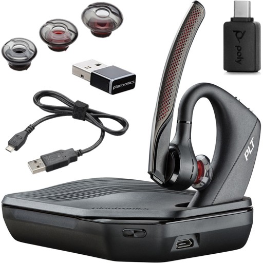 Zestaw słuchawkowy Poly (Plantronics) Voyager 5200 UC (FULL EDITION) z najnowszym odbiornikiem Bluetooth USB 5.0 (najnowsza wersja BT700) oraz etui ładującym + kabel + wkładki żelowe + Adapter USB-A do USB-C 85Q48AA
