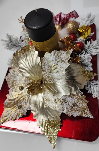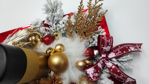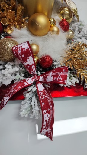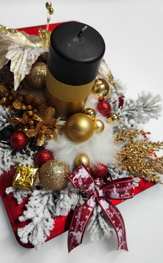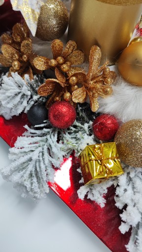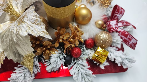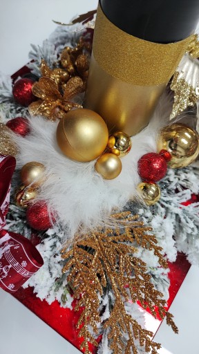 Stroik wykonany z pięknych bombek oraz innych świątecznych ozdób. Wykonany z dbałością o każdy szczegół.