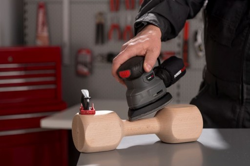 Ta szlifierka mimośrodowa jest wyposażona w samoprzylepny system mocowania na rzepy. Pozwala to na prostą i szybką wymianę papieru ściernego.