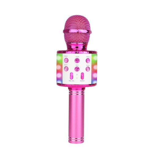 Nasz mikrofon karaoke jest świetnym wyborem dla twojego dziecka i nie tylko , jest to nowy model i posiada wiele zalet co go wyróżnia w tle innych . Posiada unikatowe , delikatne podświetlenie które nada specyficznego klimatu podczas śpiewania . Pakowany jest już w nowszym , solidnym i kolorowym opakowaniu które nada się znakomicie na prezent . Dodatkowo nasz mikrofon posiada lepszą baterię o większej pojemności co pozwoli na dłuższy czas użytkowania . W tym modelu występuje profesjonalny mikrofon z funkcją PVM ( Pro Voice Mikser ) dzięki czemu jest błyskawiczna reakcja na mowę oraz czysty dźwięk bez zakłóceń . Malowanie wykonane jest lepiej niż w poprzednich modelach , jest trwalsze i wyglądowo prezentuje się lepiej .