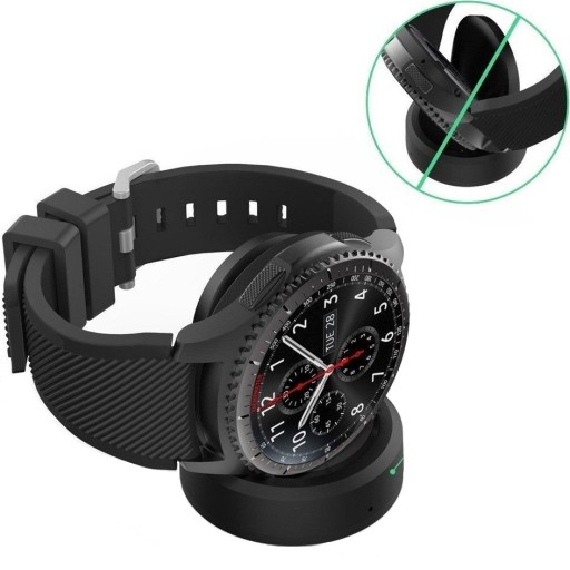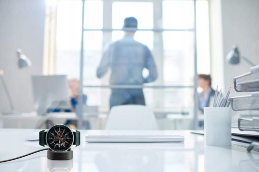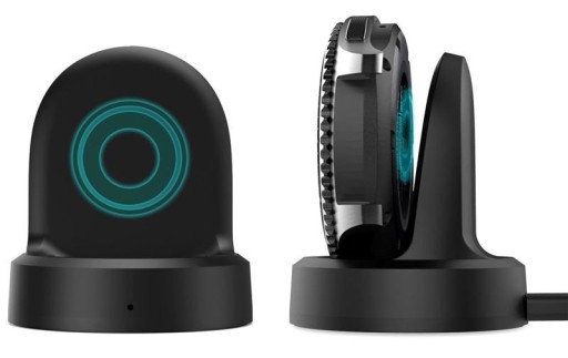 Wysokiej jakości ładowarka bezprzewodowa do smartwatchy marki Samsung, umożliwiająca ładowanie smartwatchy przy pomocy ładowarki sieciowej i samochodowej, powerbanka lub laptopa.