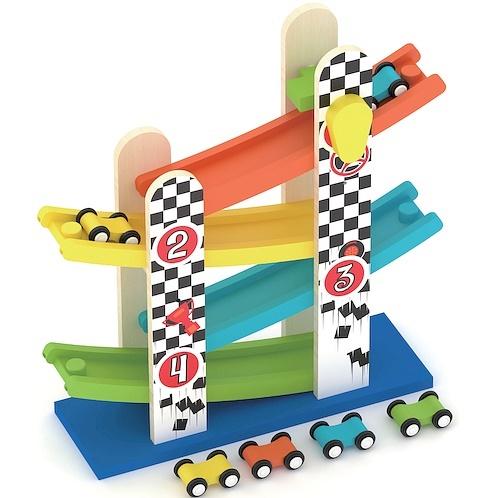 Zjeżdżalnia z Autami to tor wyścigowy z 4 poziomami zjeżdżalni. Ustawiając auto na najwyższym poziomie zjeżdżalni, dziecko może obserwować, jak zjeżdża ono ku dołowi. Tor wyścigowy dla dzieci jest skonstruowany tak, że wszystkie cztery auta mogą zjeżdżać jeden po drugim. Podczas zabawy można podziwiać akrobacje małych wozów i imponującą prędkość.