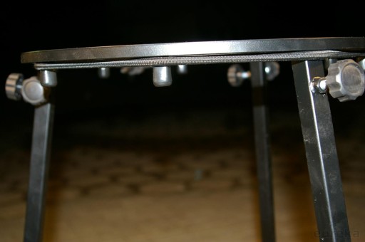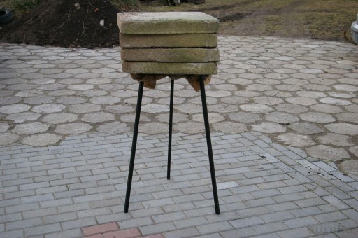 Na metalowym trójnogu.