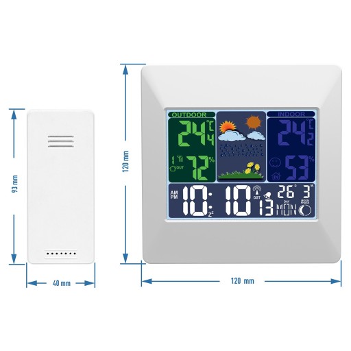 Wielofunkcyjna, bezprzewodowa stacja pogody z czujnikiem zewnętrznym, umożliwia skuteczny pomiar temperatury i wilgotności, a także posiada szereg innych przydatnych funkcji!
