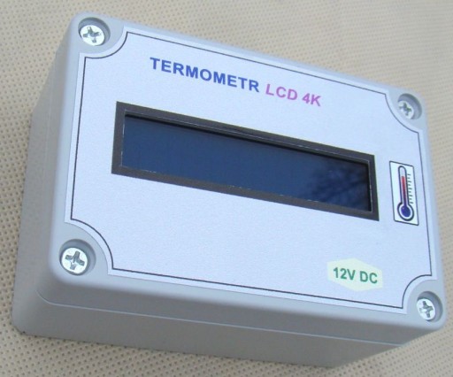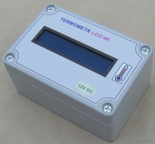 Wymiary obudowy około 10x7cm, wysokość 5cm . Termometr wyposażono w czytelny wyświetlacz 2*16 znaków.