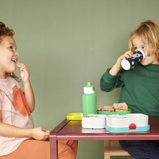 Zestaw Campus marki Mepal składający się z pudełka śniadaniowego i butelki, ozdobiony efektownym, kolorowym nadrukiem. Śniadaniówka to idealny pojemnik na kanapkę dla dziecka do szkoły czy na wycieczkę. Przykuwający uwagę kolorami, a zarazem praktyczny, dziecięcy lunchbox Campus marki Mepal, to idealny pojemnik na kanapkę dla dziecka do szkoły czy na wycieczkę. Pojemnik posiada dodatkowy wkład przeznaczony na warzywa lub owoce, po jego wyjęciu pomieści do 4 kanapek. Produkt ten jest trwały, lekki, łatwy w transporcie i czyszczeniu - nadaje się do mycia w zmywarce. Dopełnieniem jest mały widelczyk, który jest dołączony do śniadaniówki.