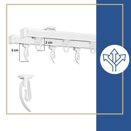 ✔️MOŻLIWOŚĆ ŁĄCZENIA - Dzięki zastosowaniu niewidocznych łączników istnieje możliwość dowolnego łączenia szyn bez ograniczeń, zapewniając płynne przesuwanie zasłon i firan.