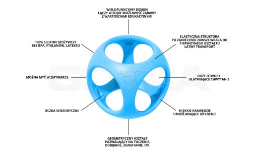 Zabawka OIBO jest bezpieczna, wytrzymała i łatwa do wyczyszczenia. Wykonana z wysokiej jakości silikonu spożywczego. Nie zawiera BPA, ftalanów, ani latexu. Bryłki zapakowane w prezentowe opakowanie.