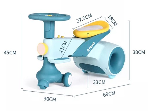 Poruszaj kierownicą od lewej do prawej, postaw stopy na platformie, a jeździk Arolo ruszy do przodu! Super zabawny i wyjątkowo oryginalny sposób na jazdę.