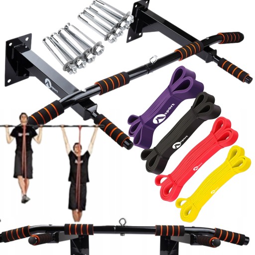 DRĄŻEK DO PODCIĄGANIA NA ŚCIANE +4 GUMY DO ĆWICZEŃ