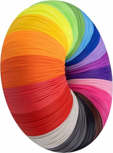 Filamenty są wykonane z PLA (poliaktyd), który cechuje się dużą wytrzymałością i pozwala na trwałość przygotowywanych projektów, znajdziesz w nich każdy możliwy kolor, co pozwoli na stworzenie wielu kolorowych modeli.