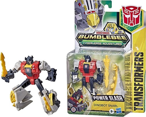 Figurka Dinobota Snarl z linii Cyberverse Adventures przedstawia bohatera w klasycznej dla siebie czarno - czerwonej zbroi z szarymi elementami dodatkowymi, która w efektywny sposób podkreśla jego masywną sylwetkę i pokazuje, jakim jest potężnym robotem. Dzięki opcji Power Slash Transformers może używać specjalnego miecza, dołączonego do zestawu. Postać Snarla można transformować do poziomu dinozaura – cały proces odbywa się w zaledwie 11 krokach!