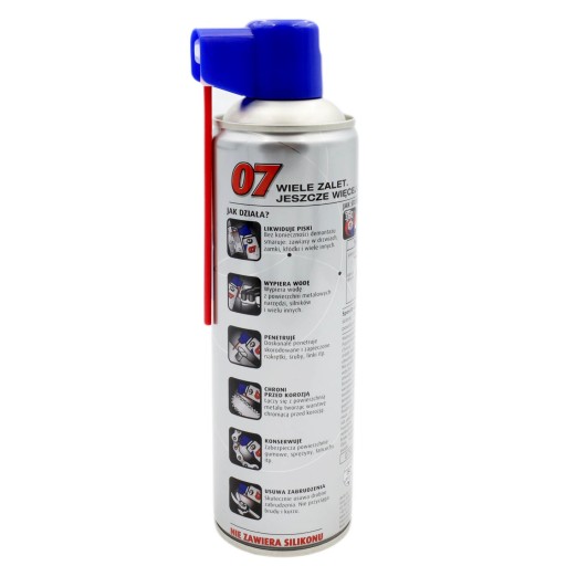 007 zawiera 7 aktywnych syntetycznych składników zawieszonych w specjalnym rozpuszczalniku. Wielokomponentowa formuła wzajemnie uzupełniających się składników zapewnia najwyższe parametry użytkowe. Posiada doskonałe właściwości integracji z powierzchnią metalu. Dokładnie ją pokrywa i wypełnia drobne nierówności, tworząc unikalną warstwę zabezpieczającą. Dzięki temu wszelkie prace w domu, garażu oraz warsztacie staną się dużo łatwiejsze.007 ma bardzo wszechstronne zastosowanie. Produkt idealnie nadaje się do zastosowania profesjonalnego oraz amatorskiego. Świetnie sprawdza się w pracach domowych, warsztatowych i wielu innych miejscach, gdzie wymagana jest wysoka jakość, precyzja i siła działania. Działa bardzo skutecznie w sposób bezpieczny dla powierzchni. Wolniej wyparowuje, dzięki czemu dłużej działa. Po zastosowaniu pozostawia delikatny świeży zapach. Penetruje skorodowane śrubki, nakrętki, linki itp. Usuwa wodę - doskonale wypiera wodę z metalowych powierzchni, narzędzi, silników itp.