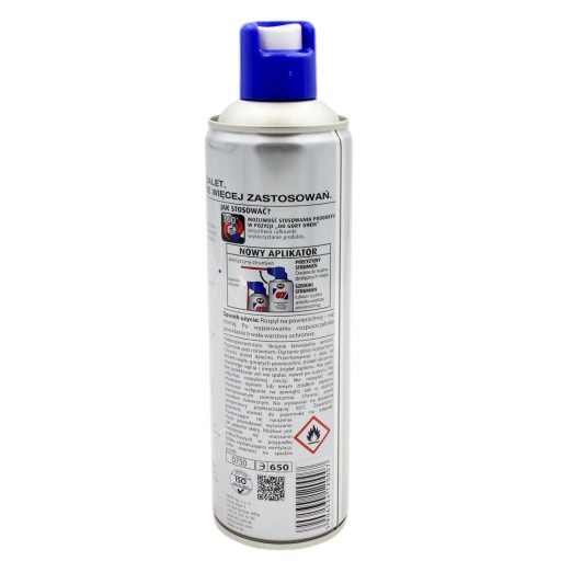 Likwiduje piski - bez konieczności demontażu smaruje zawiasy w drzwiach, kłódki itp. Chroni przed korozją - łączy się z powierzchnią metalu tworząc ochronna warstwę. Konserwuje - zabezpiecza powierzchnie gumowe, sprężyny, łańcuchy itp. Czyści drobne zabrudzenia, nie przyciąga brudu i kurzu.