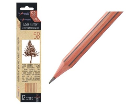 OŁÓWEK CEDRLOVE MAJEWSKI 5B Ołówki techniczne z serii CedrLove to profesjonalnie wykonane narzędzie piśmiennicze, które sprawdzi się w użytku biurowym, domowym oraz szkolnym. Wysoka jakość wykonania ołówków oraz zastosowana technologia SBS, zabezpieczająca grafit przed łamaniem, usatysfakcjonuje zarówno początkującym jak i doświadczonym rysowników. Cechy charakterystyczne: wykonane z drewna cedrowego technologia SBS (Special Bonding System) zabezpieczająca grafit przed łamaniem twardość grafitu 5B przekrój heksagonalny wysoka czystość grafitu lakierowane końcówki wskazujące na twardość grafitu nowoczesny design Cena za sztukę. EAN: 5903235202797
