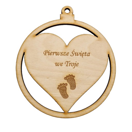 Красивая елочная безделушка НАШЕ ПЕРВОЕ РОЖДЕСТВО Гравировка Эко Дерево БОЛЬШАЯ 10 см