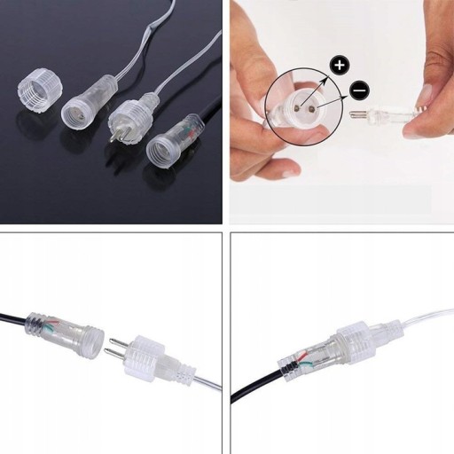 Każdy zestaw wyposażony jest w hermetyczną 2-żyłową przedłużkę umożliwiającą łączenie zestawów, oraz hermetyczny programator który posiada 1 funkcje spadającego śniegu.