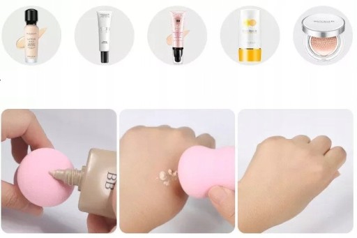 Rozprowadzanie mokrego lub suchego podkładu za pomocą gąbeczki jest bardzo proste, gąbka nie pozostawia smug i nierówności na twarzy i dekolcie.