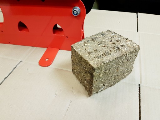 WYMIARY GOTOWEJ KOSTKI 10CM X 10CM X 15CM (ZALEŻNE OD RODZAJU UŻYTEJ BIOMASY ORAZ JEJ ILOŚCI PODCZAS WSADU).