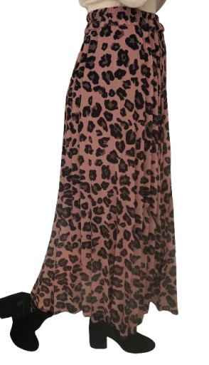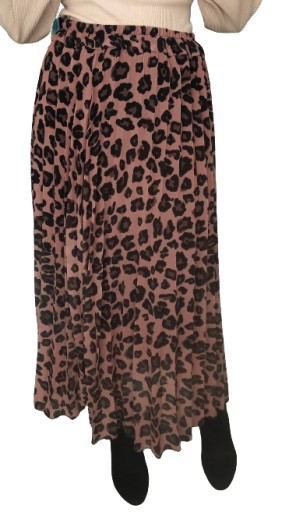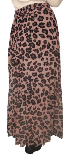 Spódnica maxi, plisowana, w pasie wszyta guma, wzór panterka. Posiada podszewkę.