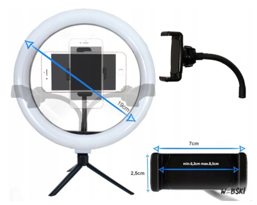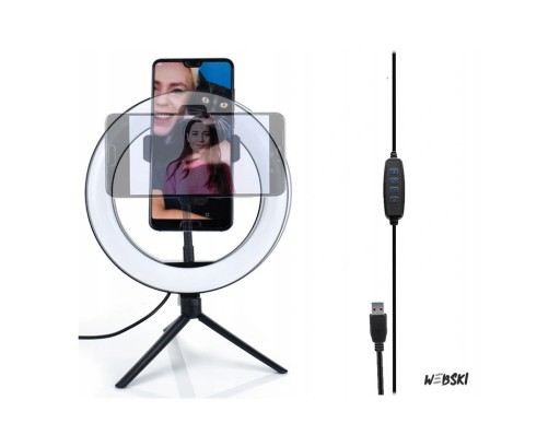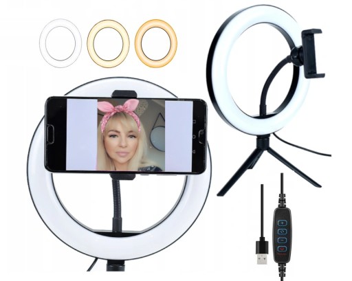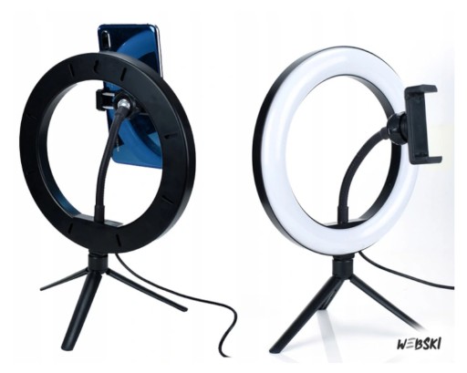 LAMPA PIERŚCIENIOWA-BEZCIENIOWA RING LIGHT 8" Z UCHWYTEM NA TELEFON Z MINI STATYWEM.