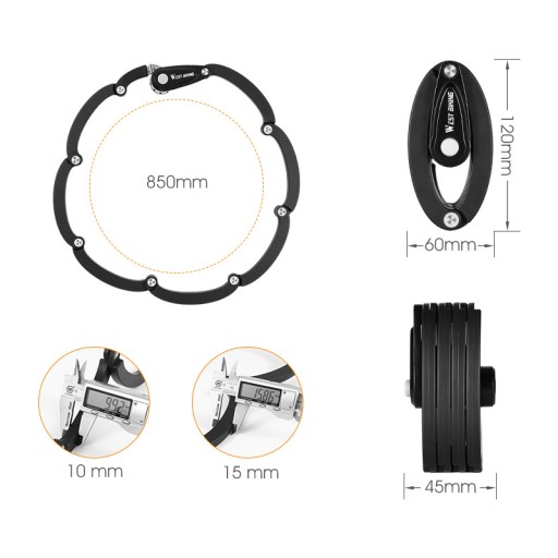 - Długość rozłożonego korpusu zabezpieczenia rowerowe może osiągnąć 85cm, który może zablokować dwa rowerowe jednocześnie.