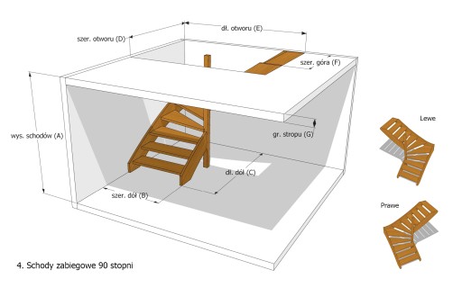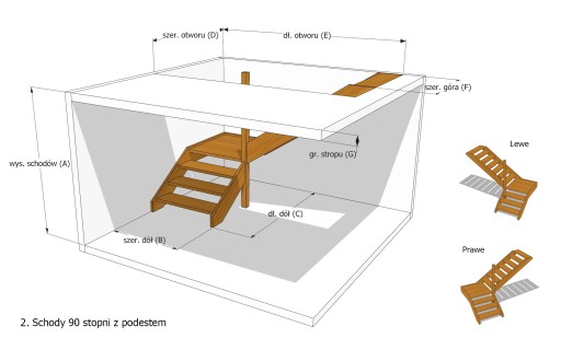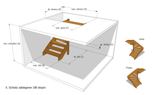 4) Na podstawie pięciu rysunków znajdujących się poniżej wybierz grafikę pasującą do Twojego domu, proszę wypisać poszczególne wymiary oraz orientację schodów. ( prawe/lewe)