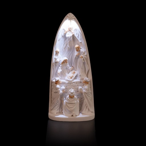 Przepiękna biała szopka żywiczna led