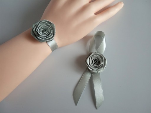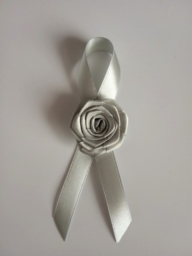 Ozdoba wykonana jest z satynowej różyczki i wstążki.