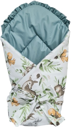 Obszyty jest w 100 % bawełnianą tkaniną. Posiada zaokrąglone brzegi i szeroki rzep, dzięki czemu łatwo nadać mu odpowiedni kształt podczas otulania maluszka. Dodatkowo posiada tasiemkę, dzięki której możemy dokładnie otulić maluszka.